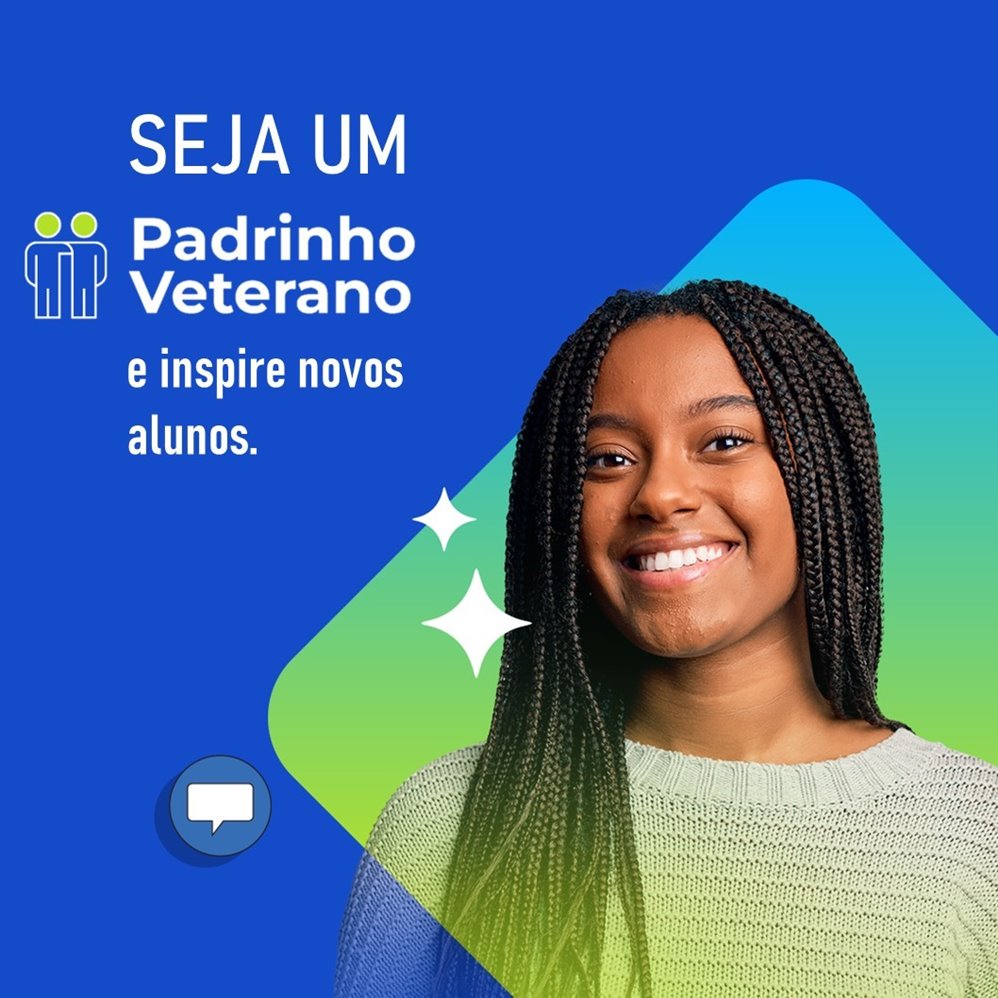 Faça parte do Padrinho Veterano da graduação digital, programa que tem a missão de facilitar a integração dos calouros na universidade, além de auxiliá-los em caso de dúvidas na jornada acadêmica.